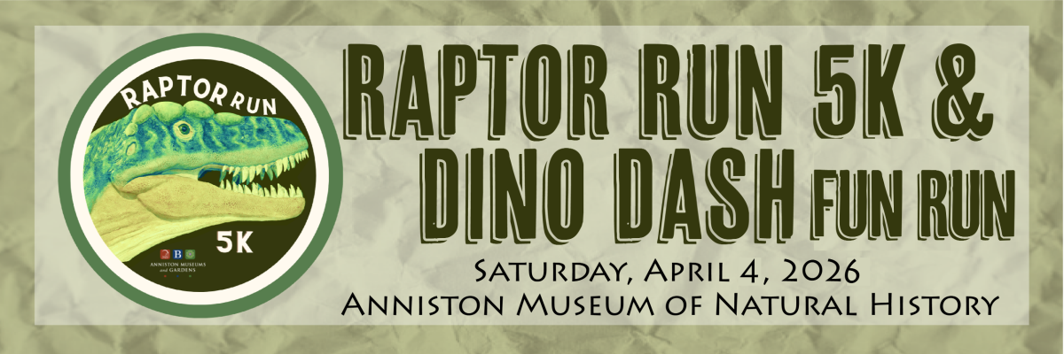 The first 200 registrants will receive a complimentary T-shirt and sticker. Registration fee is $30.00 (+ processing fees). All proceeds from the Raptor Run 5K support the Anniston Museums and Gardens’ mission to transform lives through history and nature.