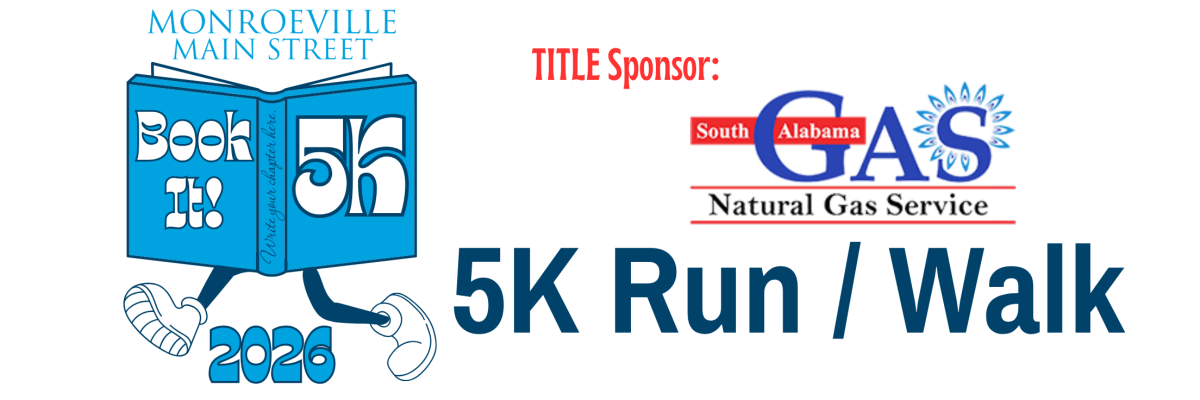 Monroeville Main Street is proud to present the Book It 5K Run/Walk on Saturday, May 9, 2026, in downtown Monroeville. This signature event blends fitness, fun, and literary flair to celebrate our town’s identity as Alabama’s Literary Capital.