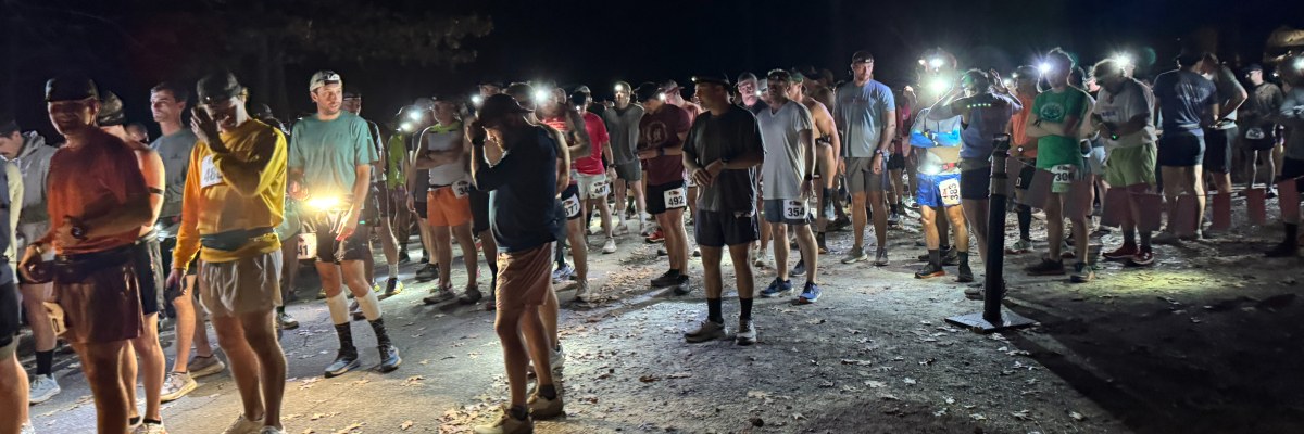 In between each 5k, participants will be able to sleep in their vehicles in the parking lotor to set up tent camping in the grass camping field across the road from the parking lot. Tent camping sites will be first come first served and will be $20/night with a maximum of 4 people per campsite. People wishing to camp will need to stop at the Oak Mountain park entrance and fill out the standard camping paperwork. This camping will be available both Friday and Saturday nights of race weekend. The tent camping area has a bathroom and at least 4 electrical poles that will be available to everyone camping. (You'll have to share them, in other words) Truck campers and camper vans can be parked in the parking lot, but must take up only one parking spot. There is no camping fee for the parking lot, just for tent camping in the green camping space.