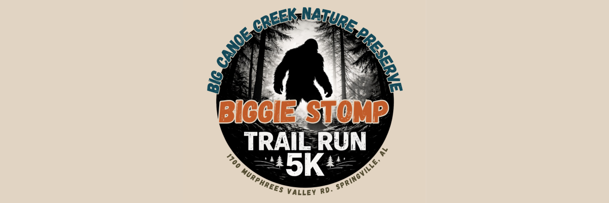 The Biggie Stomp Trail Run 5K is a scenic trail race through Big Canoe Creek Nature Preserve. Proceeds support trail maintenance, wildlife protection, and outdoor education programs.