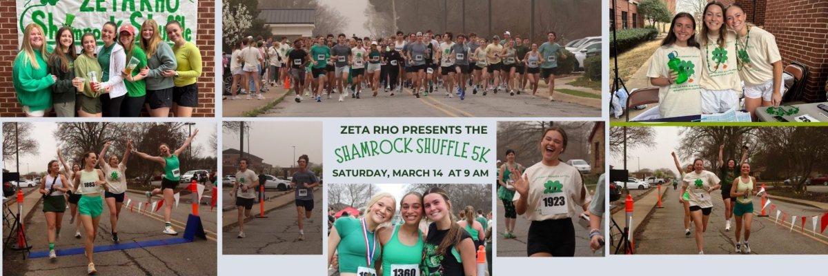 Zeta Rho presents the Shamrock Shuffle on March 14 at 9:00 AM. Come out in your best St. Patty's gear and run to raise money for the Child Safety Center of White County.
