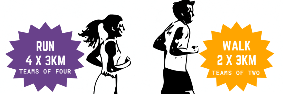 A fun and inclusive event with teams of four running 3K or teams of two walking 3K