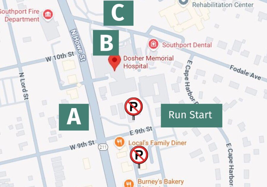 - No parking in the Dosher Emergency Department lot (located at E. 9th & N. Howe)