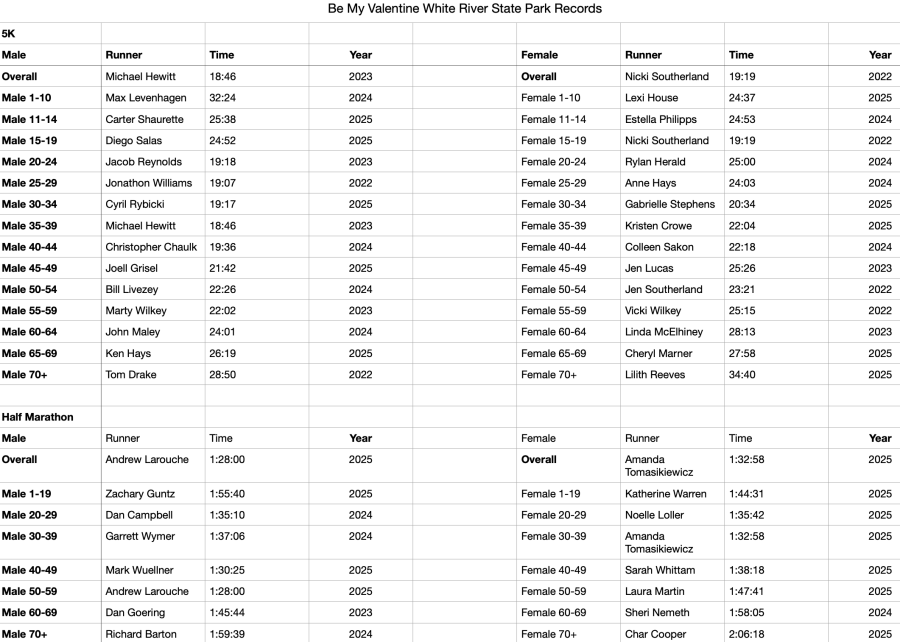 These are the event records since the race was moved to White River State Park