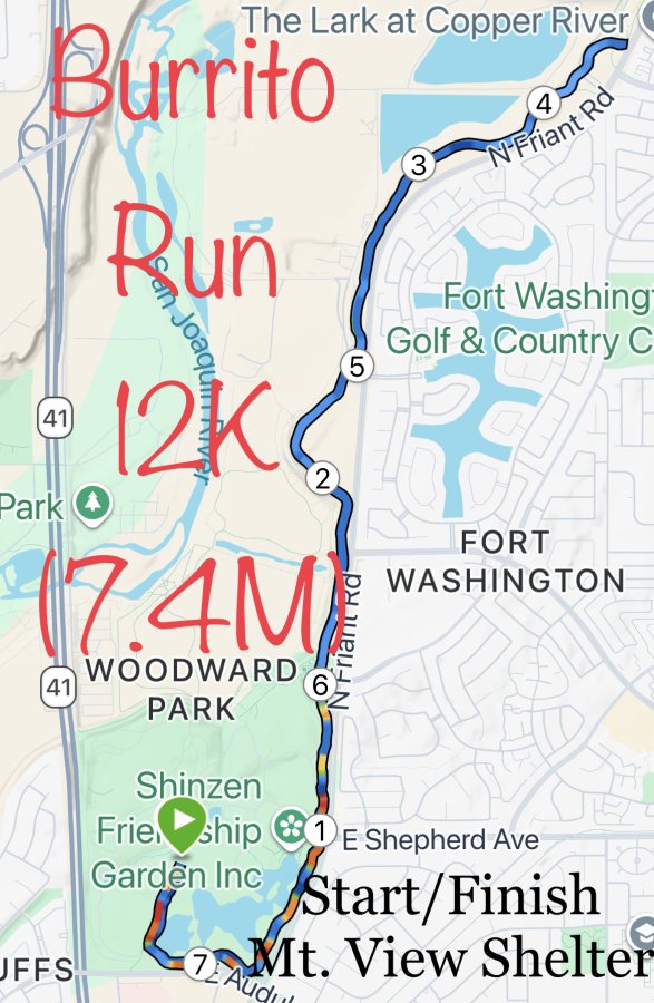 Reyes Running events present this very unique event, BURRITO RUN! Participants get to choose the distance they want to participate in 12K (7.4M) 5k or 2 MILE WALK!...and YES, participants will get some delicious BURRITOS at the finish line! 12K is perfect for anyone getting ready for a Spring half marathon/marathon! Course will be OUT and BACK on Eaton Trail (paved path), mostly flat, fast course! For sure you don't want to miss this friendly, family running event!