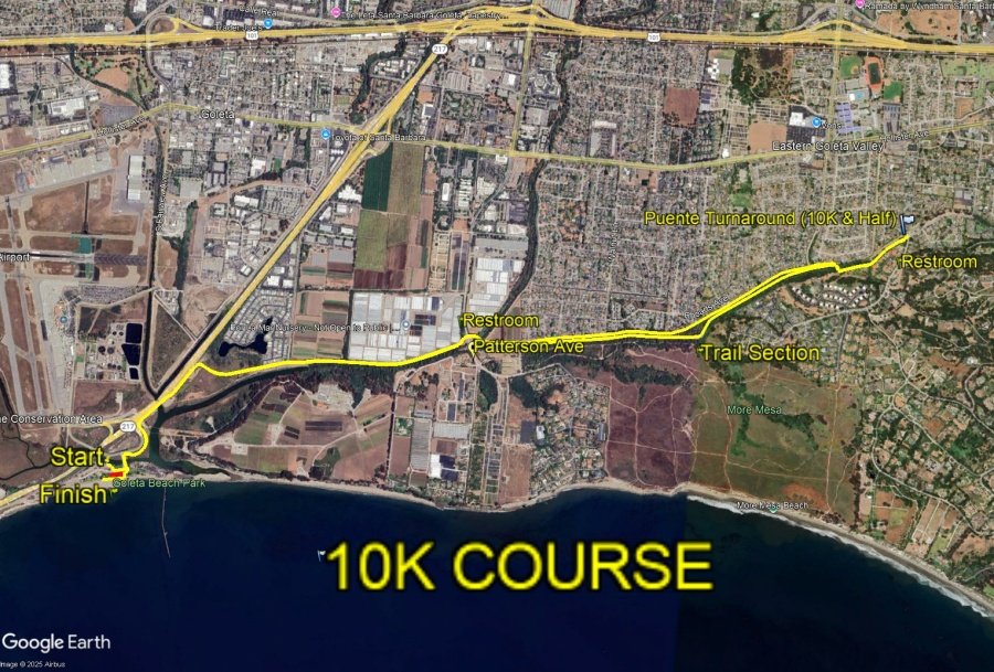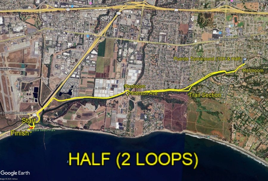 TRAIL SECTION (YELLOW) - Both the Half & 10K will use the offroad path when heading out to the Puente Turnaround.