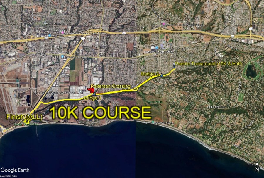 Race venue is located at the beautiful Goleta Beach Park located in Santa Barbara County. Run course is on a dedicated asphalt course. Events include Half Marathon (13.1 miles), the Grinch 10K (6.65 miles), 5K (3.1 miles), and Kid's 1-Mile run.