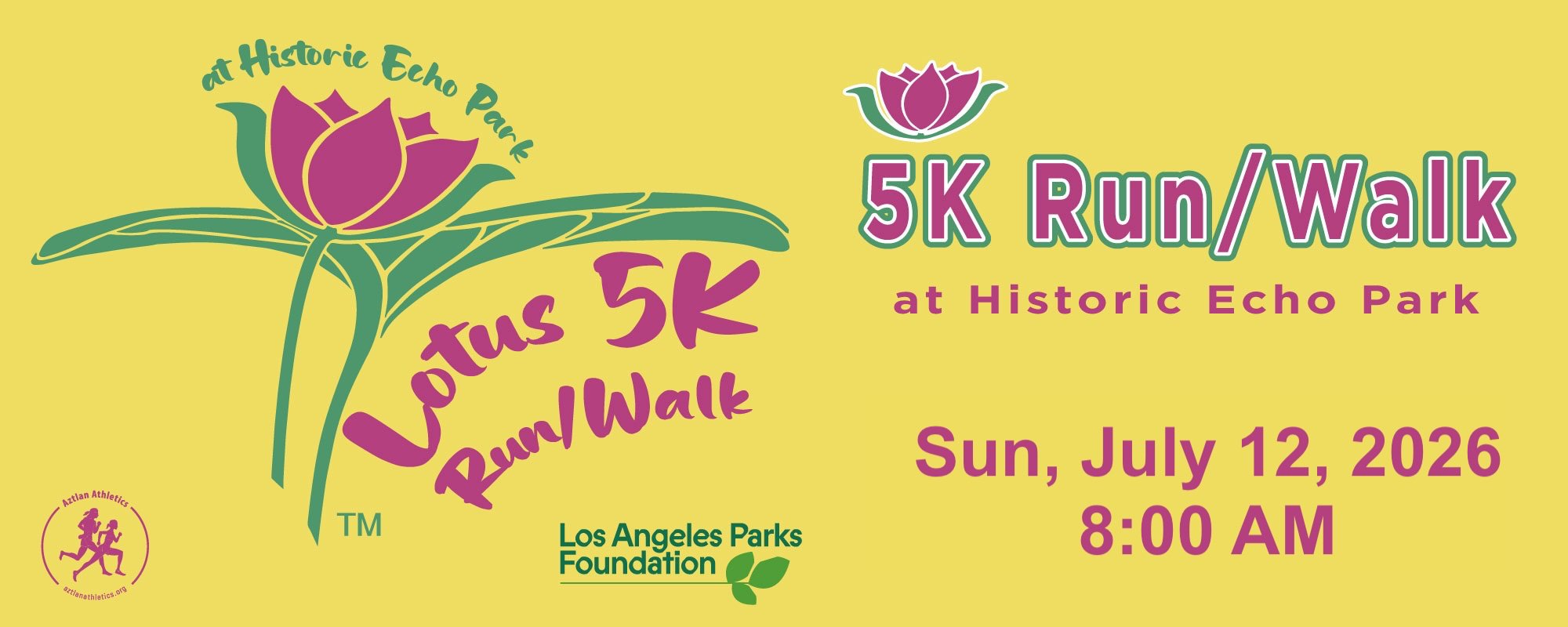 The second annual, Lotus Flower 5K run/walk is here at the historic Echo Park, 751 Echo Park Avenue, Los Angeles, CA 90026. This is a fun run for all levels of ability. It will take place on the final day of the Lotus Festival (Sunday July 12th). Your registration will include a commemorative premium T-shirt, amazing die cast finisher medallion, a commemorative bib and access to the refresh zone. Registration is limited to the first 1000 participants so sign up early! Brought to you by Aztlan Athletics a proud partner with the Lotus festival and the city of Los Angeles recreation and parks programs. For more information on festival details, parking and street closures visit www.laparks.org/lotusfetival.