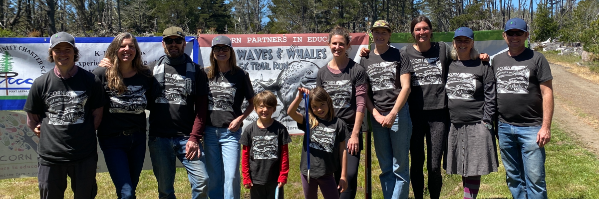 Proceeds from the Waves & Whales Trail Run support ACORN Partners in Education’s environmental stewardship program, Students Protecting the Coast, which engages youth in hands‐on learning with a focus on conservation and community outreach. Students Protecting the Coast began during the 2012‐13 school year as part of the local and national campaign to include the Point Arena‐Stornetta Lands in the California Coastal National Monument. Students continue to learn about our coastal landscape and are empowered to use their voice by sharing what they’ve learned with the community.