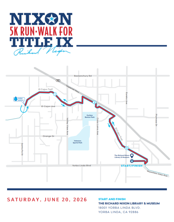 Bring your family, friends, sports teams and community groups to the NIXON 5K FOR TITLE IX and run (or walk) this moderate course following Yorba Linda’s El Cajon Trail. Athletes are encouraged to wear their favorite team gear supporting female sports! This is accessible for runners of all levels; strollers are welcome and dogs are allowed. Following the race, guests are invited to stop by the vendor fair in the Library parking lot!