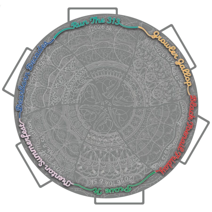Dearborn Decades 5K is part of the Trivium Racing Michigan Mega Medal Series. Medals from six 2026 races connect magnetically to form one epic Mega Medal.