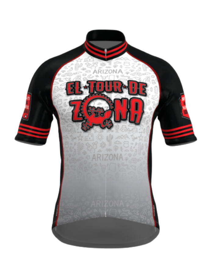 You can order El Tour de Zona cycling jerseys and cycling caps with your registration to be picked up at the event.