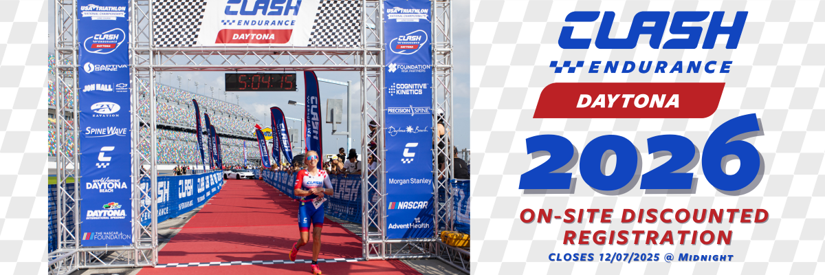 From December 4th -6th, 2026, Daytona International Speedway will welcome triathletes from around the world to CLASH Endurance Daytona Triathlon Festival Weekend. Named “Best New Race” 2018 by Triathlete Magazine and is held at the home of The DAYTONA 500.