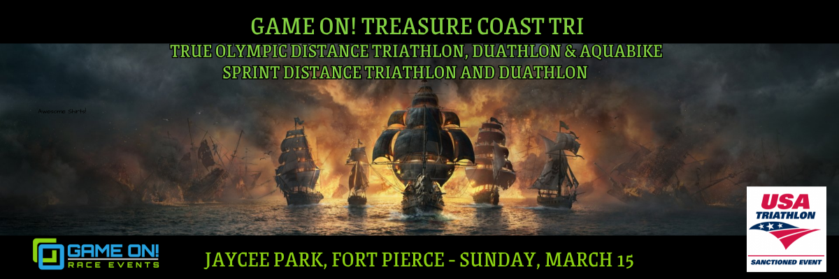 The 8th Annual Game On Treasure Coast Triathlon will take place on Sunday, March 15th at Jaycee Park on Hutchinson Island.  Sprint Distance Triathletes will start from the beach before heading out on a 1/4 mile swim in the calm waters of the Indian River Lagoon, followed by a 12.5 mile out and back bike course along A1A, and end the race with a 3.1 mile run on A1A.  Olympic distance triathletes will complete a .9 mile swim, 24.8 mile bike and 6.2 mile run along the same beautiful course.  Now offering the Duathlon in both Sprint and Olympic Distances! Each will start with a 1 mile run in place of the swim.  This is a great race for beginners.