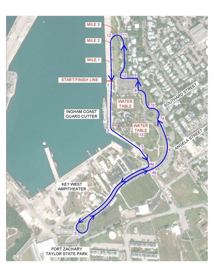 The run begins and ends near the Ingham Ship, following 3 loops of the promenade at the beautiful Truman Waterfront where there is plenty of room to move and lots for kids to enjoy at the playground and splash park.
