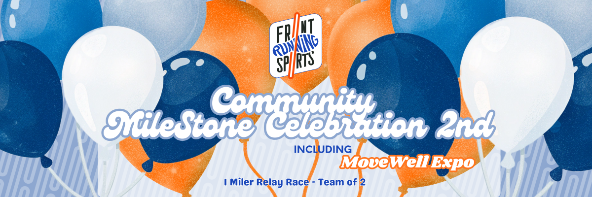 You’re invited to celebrate another amazing year with us at Front Running Sports! Join our 2nd Annual Community MileStone Celebration — a fun-filled day of running, walking, community, and giveaways!