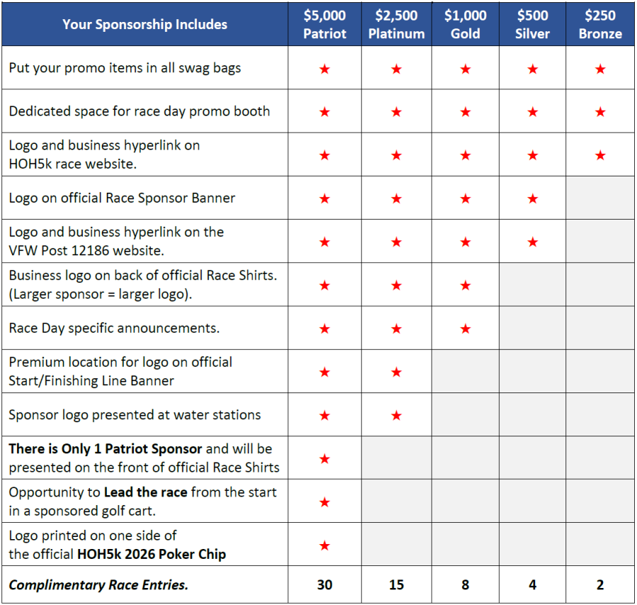 We are excited to present you with the chance to join our local volunteers and veterans dedicated to serving this wonderful community. Your support, whether through participation, donations, or sponsorships, significantly strengthens our capacity to continue our mission.