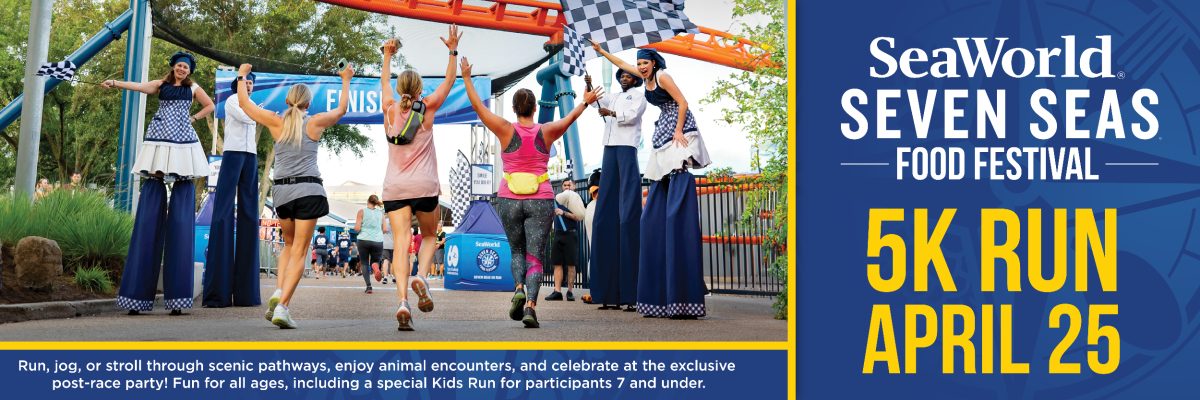 Spend time with friends and family as you run, skip, jog, or stroll through our SeaWorld’s Seven Seas Food Festival 5K Run! This event takes place on Saturday, April 25, 2026. Enjoy the relaxing ambiance of the park’s picturesque pathways and catch a glimpse of SeaWorld’s animals before you cross the finish line at Expedition Odyssey Plaza. There’s even incredible photo opportunities throughout the course that you will not want to miss!
