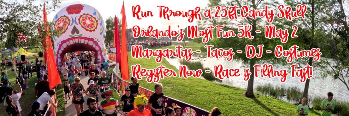 It's Fiesta time with a touch of Día de los Muertos with this super fun sunset 5K! Runners will start and finish through the most spectacular start/finish line anywhere, a 25-foot tall Candy Skull! This is a fun-filled themed event with entertainment, great food & drink (think margaritas & tacos!), costume prizes, awesome shirts and medals, and lots more!