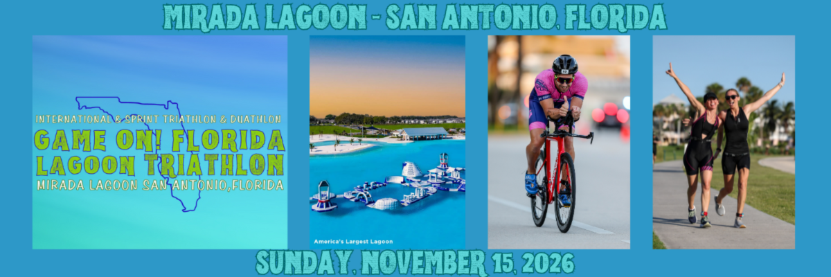 Introducing the Game On! FLORIDA Lagoon Triathlon — a brand-new, high-energy race experience like no other, taking place at the stunning Mirada Lagoon in San Antonio, Florida! This fresh water, man-made lagoon sets the stage for an unforgettable race day that combines tropical vibes with serious competition.