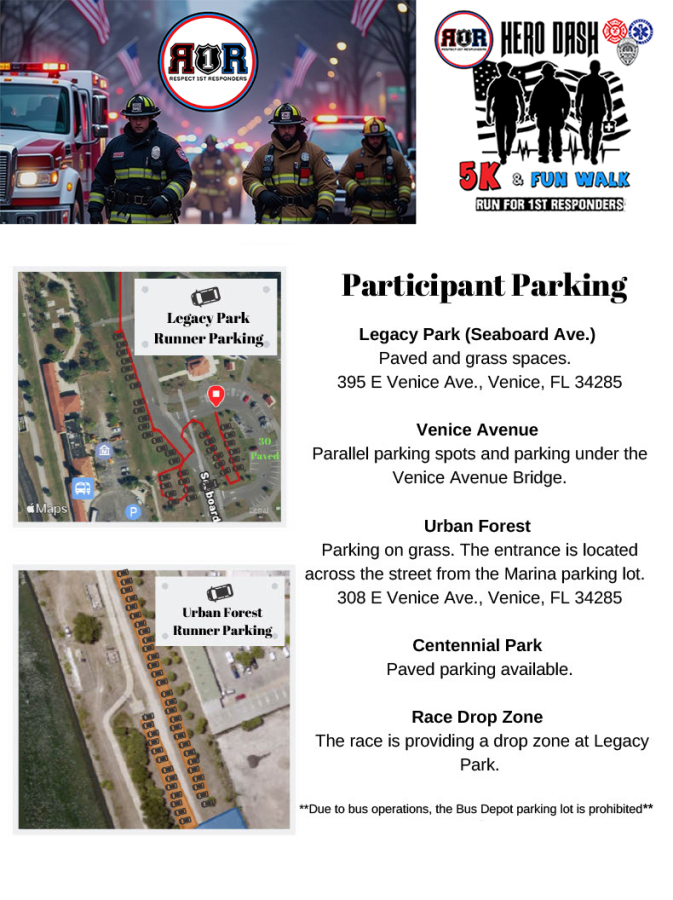 Join us for the 5K Hero Dash on Saturday, January 31st 2026, at the beautiful Legacy Park, right near the historic train depot in Venice! You can choose to race or walk the 5K course along the scenic Legacy Trail along Venice’s Intracoastal Waterfront.