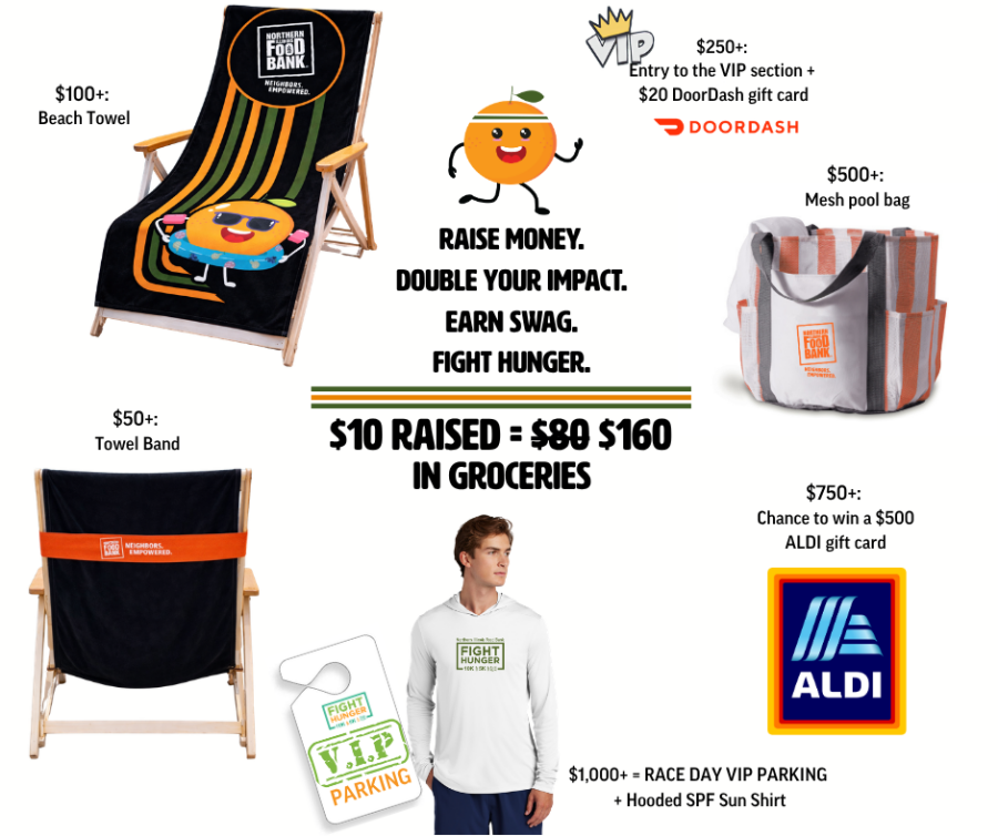 With matching funds from US Foods, your impact goes even further. Every $10 donated helps provide $160 worth of groceries for our neighbors, so every dollar truly makes a difference. Plus, fundraisers can earn some fun, summer-ready swag along the way.