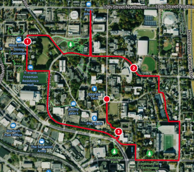 The exact address of arrival will be on Tech Green, 261 4th St NW, Atlanta, GA 30313.