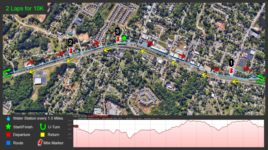 We're in North Georgia, and there's not much that anyone can call flat & fast. However, this course if most definitely one of the flattest and fastest course we've got! The 5K is one loop & the 10K is a double loop.