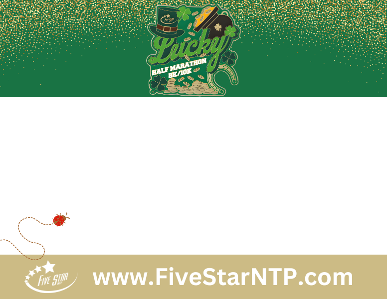 Share your distance, a selfie, or a picture along your race route and use the hashtag #Lucky5K10KHalfMarathon #fivestarntp #fivestarrunning