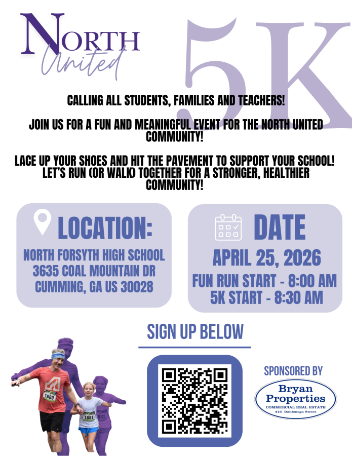 Join us for a fun and meaningful event for the North United Community! Lace up your shoes and hit the pavement to support your school! Let’s run (or walk) together for a stronger, healthier community!