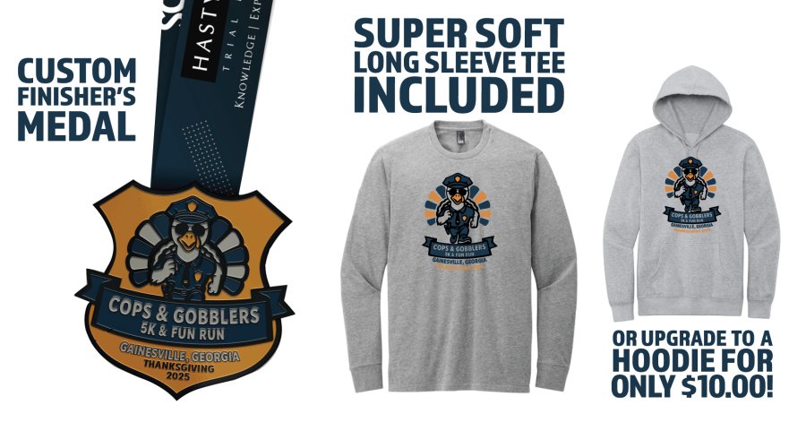 Kick off your Thanksgiving Day with a fantastic new tradition — the Cops & Gobblers 5K in the heart of downtown Gainesville! Join neighbors, families, and first responders in a festive morning dash that earns you your turkey and a few extra helpings of stuffing.