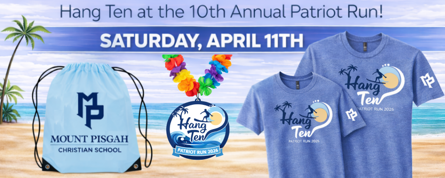 Join us as we celebrate a decade of running, community, and school spirit at Mount Pisgah Christian School’s 10th Annual Patriot Run. This year’s Hang Ten theme invites runners, families, and supporters to ride the wave of fun as we come together for our biggest milestone yet!