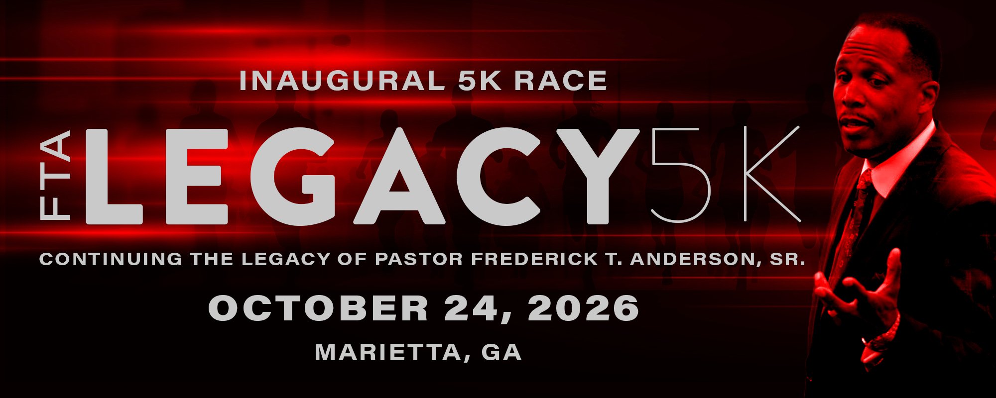 Join us for our first annual Legacy 5K in honor of the late Pastor Frederick T. Anderson. Pastor Anderson is the founding pastor of Covenant Christian Ministries and was a leader in Marietta for over 30 years. It was Pastor Anderson's goal to build a permanent home for Covenant Christian Ministries, and all proceeds from the 5K will go toward making that vision a reality. The course is a look back at our church history and the various places we called home in Marietta.