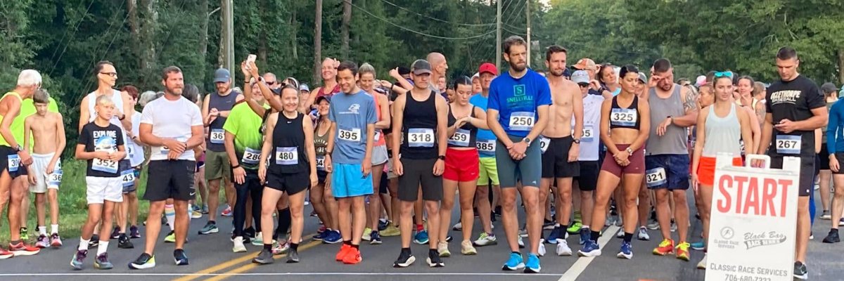 All 3 races will start at the same time in front of the old school building on Veazey Street, run down to the Firefly Trail.  The 10K and 10-Miler will run to a turn around cone on the Firefly Trail and return to the school along the same path.