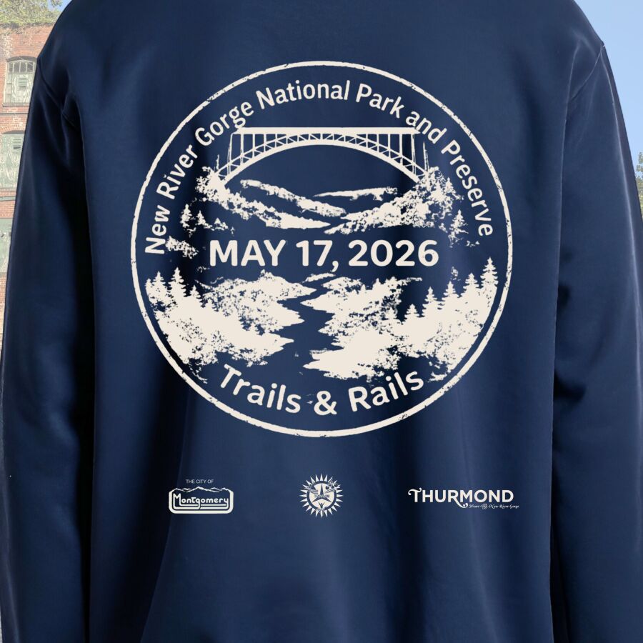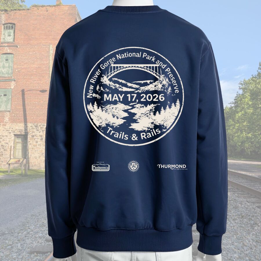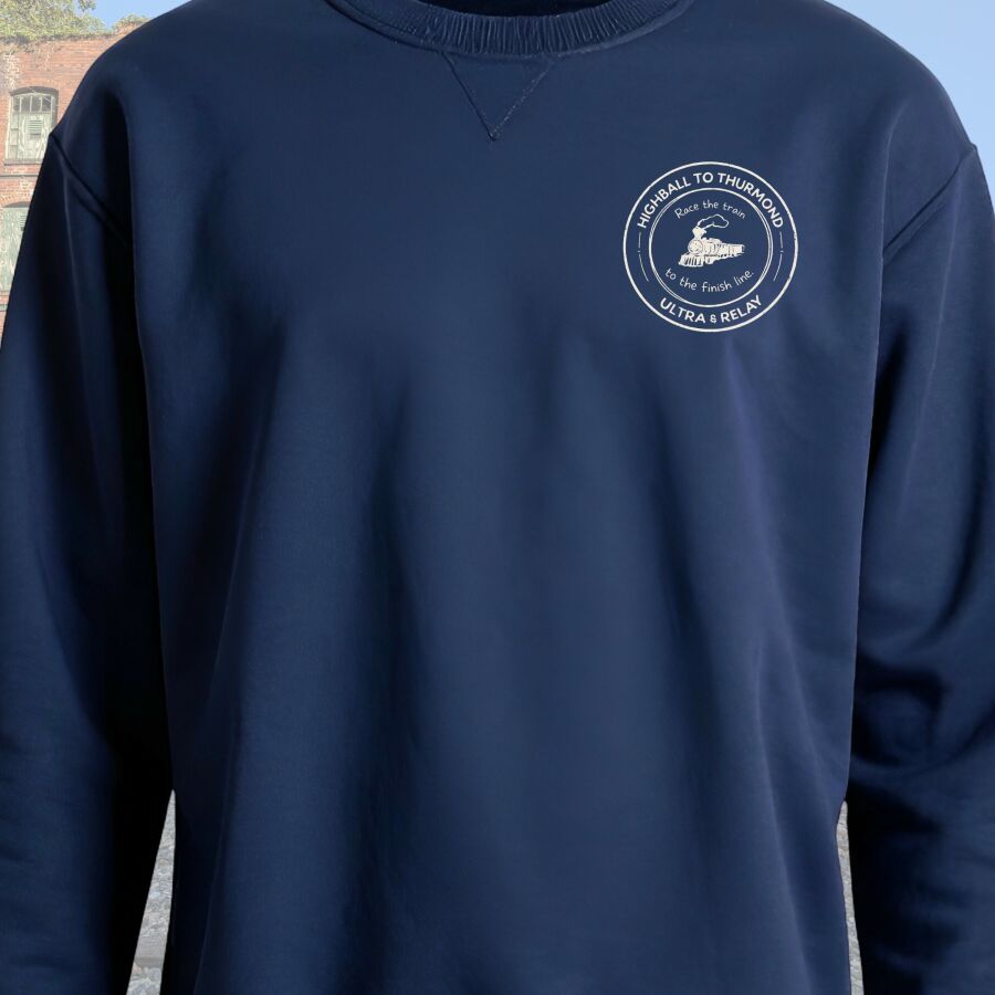 The 2026 Highball to Thurmond participant sweatshirt is a navy, unisex crewneck designed with the race experience in mind. Comfortable and durable, it’s made to be worn well beyond race weekend—on cool mornings, train rides, and everyday runs around town.