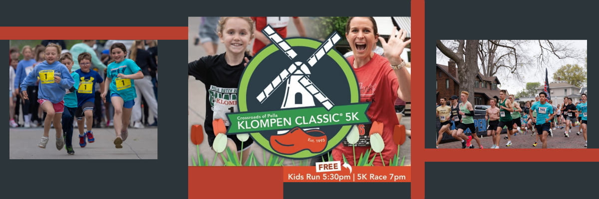 For more than three decades, the Klompen Classic 5K has brought the heart of small-town Iowa to life. This beloved Pella tradition draws runners and walkers together to race for a cause. Every dollar raised supports Crossroads of Pella and our mission to strengthen local children and families. With scenic streets, smiling faces, and a whole lot of heart, the Klompen Classic is more than a run — it’s a celebration!