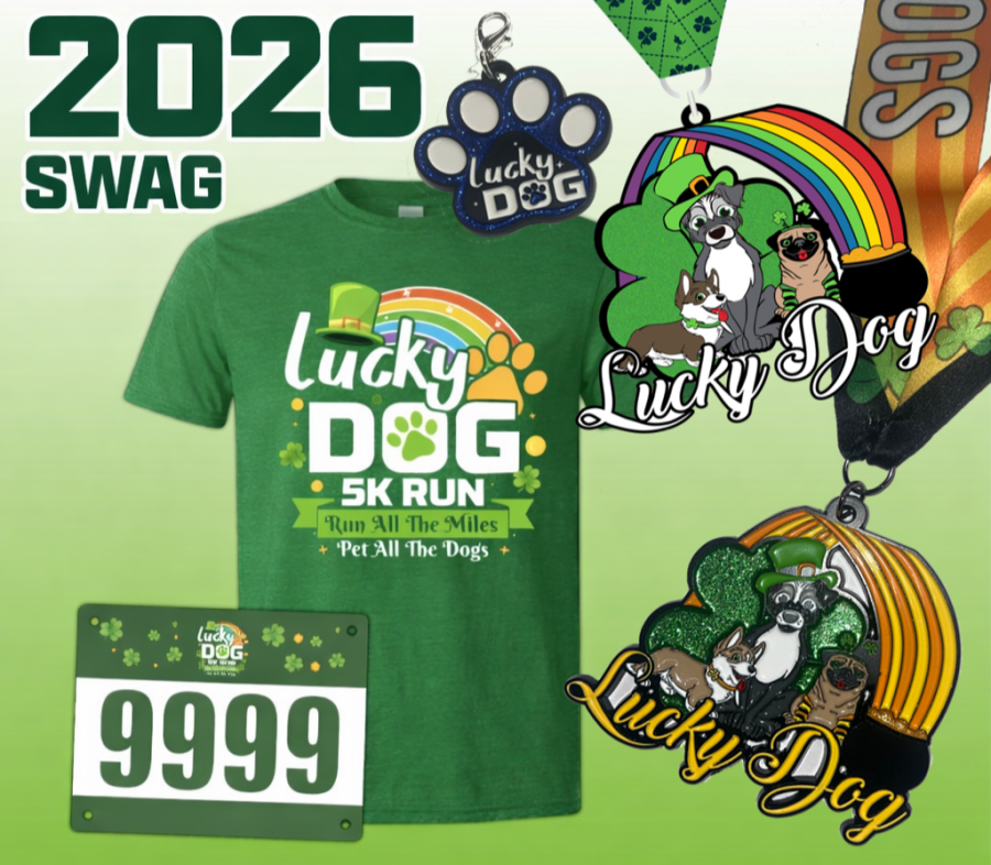 Registration Includes: Short Sleeve Black T-Shirt, Digital Bib, Finisher Medal and Dog Charm.