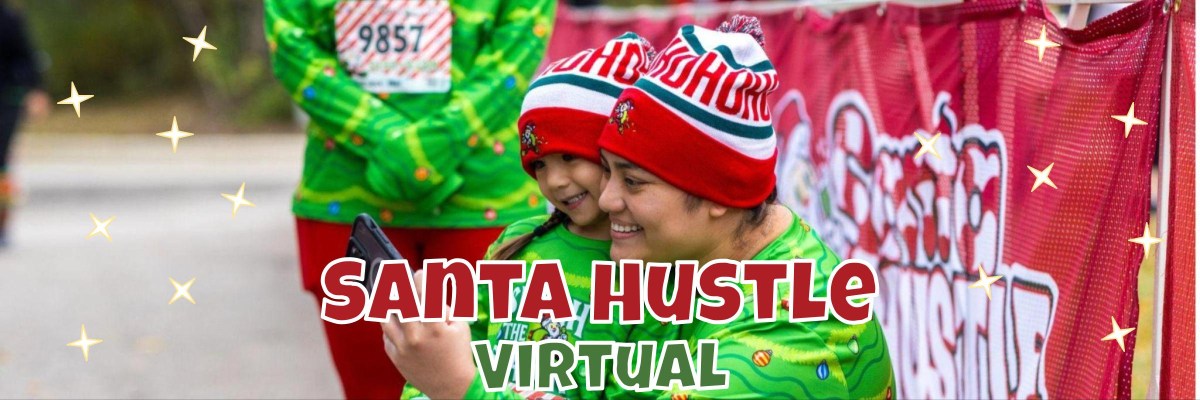 Not a Santa Hustle® near you? No worries! You can run it virtually! Run a 5K, 10K, Half Marathon, or Marathon by yourself or with a large group, in the location of your choice, at any time of the day, between the dates of December 1 through December 31. Same Race. Same Swag. Just YOUR Location!