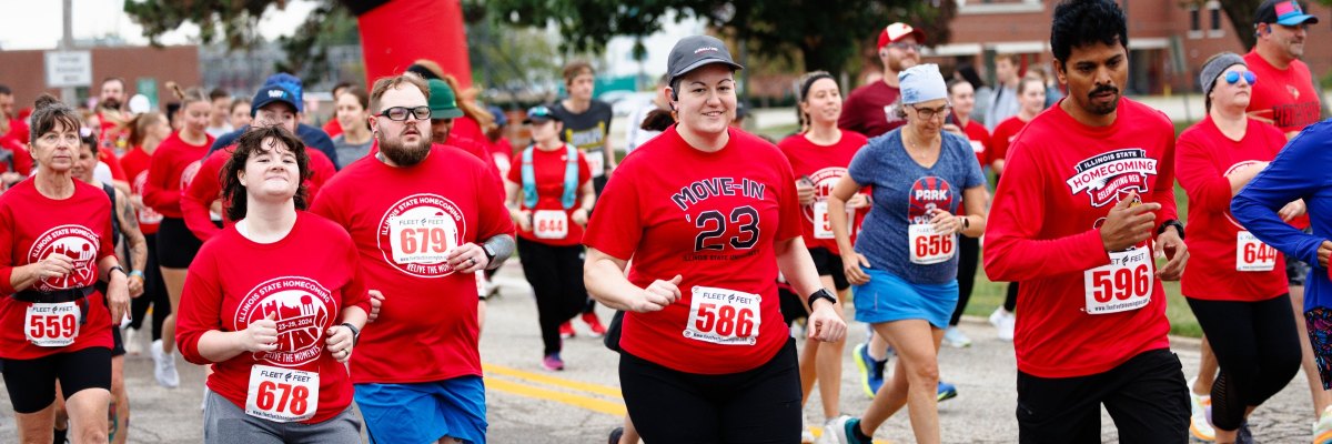 Get ready to raise the banner high at the Town and Gown Hybrid 5K and 1-Mile Fun Run/Walk as a part of Homecoming. The in-person race will take off at the Student Fitness Center at 8 a.m. and go through Uptown Normal and around campus. One water stop will be set on the course, and refreshments, courtesy of the Town of Normal, will be available afterward for all run/walk participants. Check out the course to get ready to run.