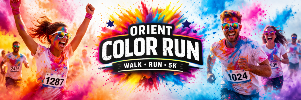 Join us for the Orient Color Run 5K, a fun, family-friendly event benefiting our community’s 4th of July Celebration. Whether you walk, run, or take your time, this untimed 5K is all about having fun.