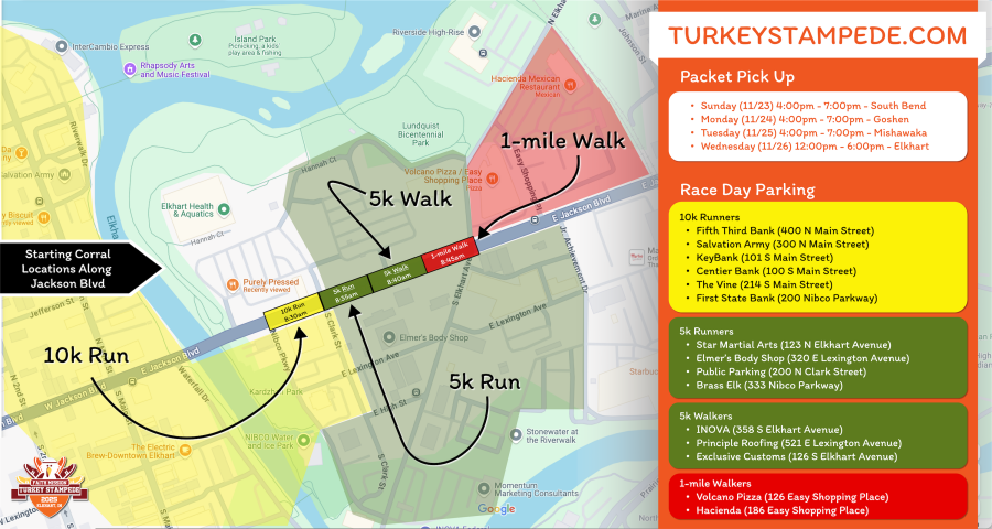 Convenient locations in South Bend, Mishawaka, Goshen, and Elkhart - plan on picking up your packet before race day at a location near you.