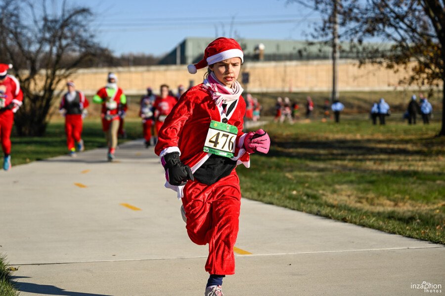 New this year, the Santa Elf kids run from 50 meters to 150 meters for kids ages 1-9. All finishers of the kids run will receive a medal.