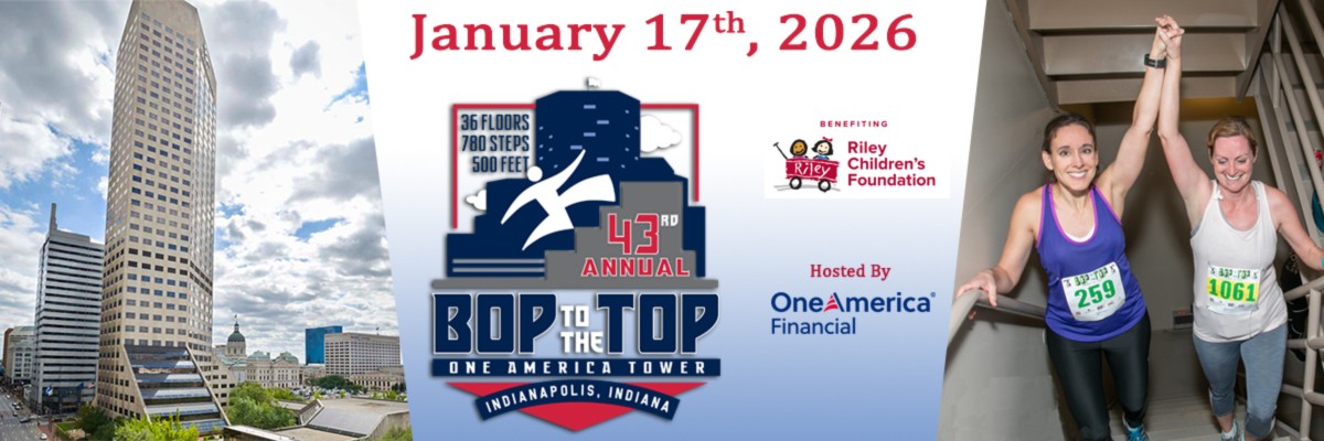 Climb all 36 floors of the OneAmerica Tower on Saturday, January 17 in the 43rd annual Bop to the Top Stair Climb, benefiting Riley Children's Foundation! Bring the family out, as this event is open to all ages and abilities!