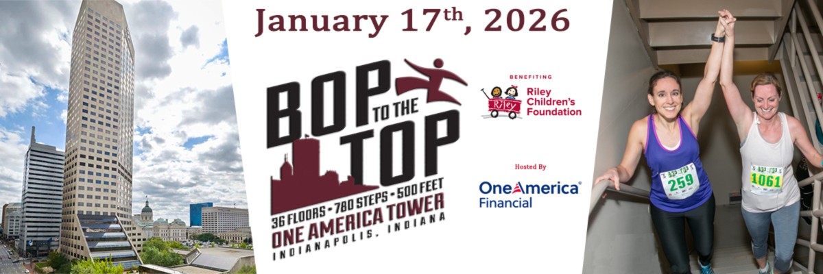 Climb all 36 floors of the OneAmerica Tower on Saturday, January 17 in the 43rd annual Bop to the Top Stair Climb, benefiting Riley Children's Foundation! Bring the family out, as this event is open to all ages and abilities!