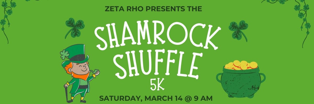 Zeta Rho presents the Shamrock Shuffle on March 14 at 9:00 AM. Come out in your best St. Patty's gear and run to raise money for the Arkansas Crisis Center.
