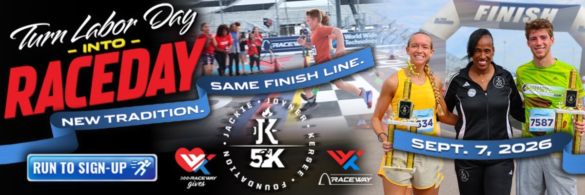 Add to your Labor Day festivities and don't miss the fun and excitement of the 4th annual JJK5K Race on September 7th at World Wide Technology Raceway. This will be the first event of the 2026 Enjoy Illinois 300. This is the fourth annual event honoring our hometown champion Jackie Joyner-Kersee. She has dedicated her life after Olympic competition to supporting the youth of East St. Louis. Please join us for this incredible opportunity to celebrate her accomplishments, welcome to the first event of the 2026 Enjoy Illinois 300 weekend.