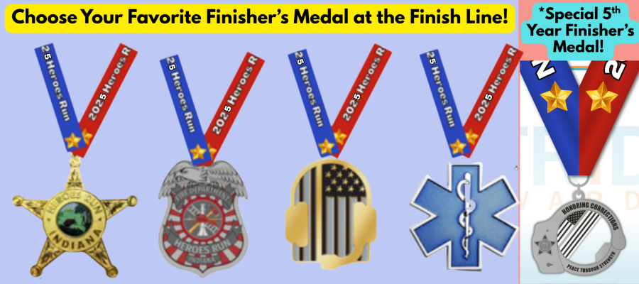 Choose Your Favorite Heroes Finisher's Medal @ the Finish Line! (While supplies last)
