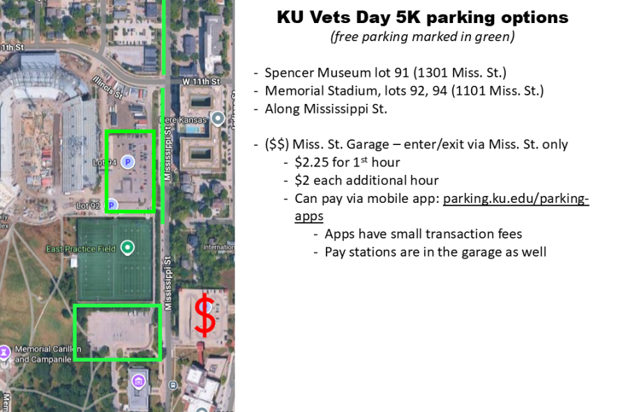 The annual KU Vets Day 5K, hosted by the KU Student Veterans of America and the Veterans Alumni Network, honors our past/present veterans and raises awareness of the roles veterans play in our university and community. The 5K usually begins and ends at Memorial Stadium, traveling through the KU campus past KU’s war memorials. This year, due to construction at Memorial Stadium, the start and end of the race will take place at the KU Welcome Center (1266 Oread Avenue). All proceeds from the Vets Day 5K support KU Student Veterans of America chapter, the KU Veterans Alumni Network and the Lt. Gen. William K. Jones Military-Affiliated Student Center.