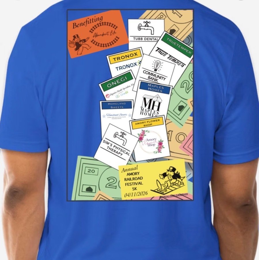 Come support the Non-Profit Abundant Life Adult Activity Center as we host the Railroad Festival 5K. Run/walk around the historic town of Amory during our community wide 44th Annual Railroad Festival celebrating Amory’s founding in 1887 as a railroad town. Race starts at 8:00 am in front of stage at Frisco Park downtown. After the race, enjoy the festival's craft booths, food, and musical entertainment. Festival schedule (click here).