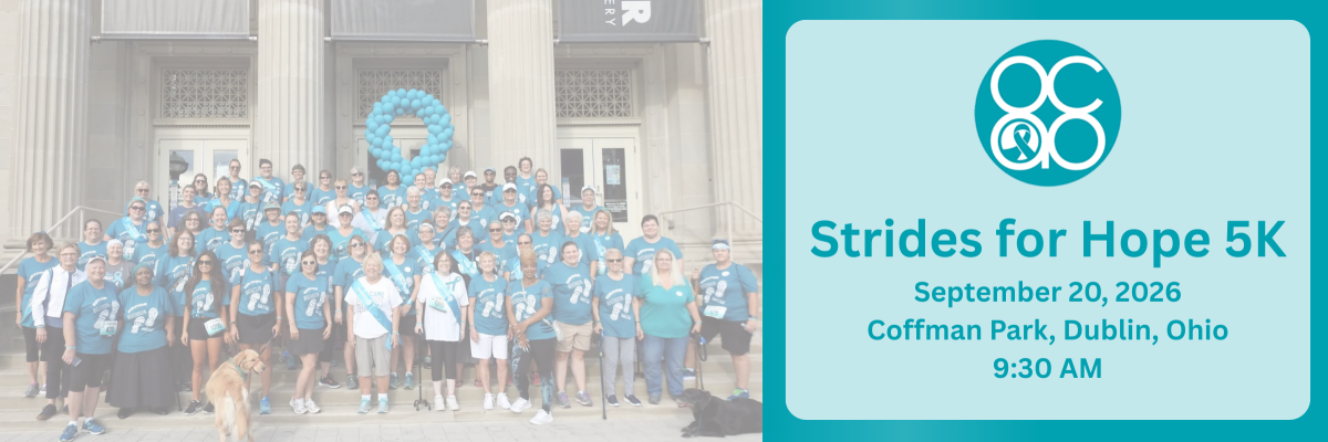 Join the Ovarian Cancer Alliance of Ohio (OCAO) on Sunday, September 20, at the Dublin Community Recreation Center for the Strides for Hope 5K Run and Walk as we promote early detection of ovarian cancer and celebrate survivors. Our mission at OCAO is to promote early detection of ovarian cancer with advocacy, education, awareness, and public outreach to improve outcomes and help save lives. We also work to support women who have been diagnosed with ovarian cancer, as well as their family members.